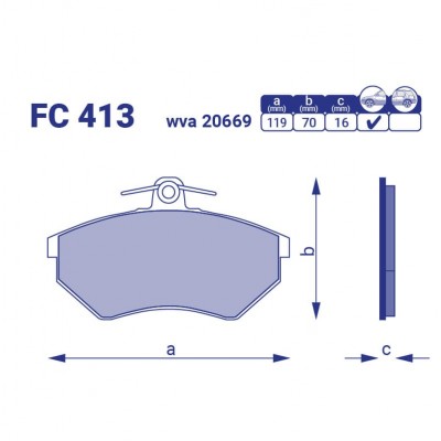 Тормозные колодки FC 413 разработаны специально для бесшумного торможения, которое обеспечивают двойные прокладки с резиновым покрытием. Они обеспечивают в 6 раз больше шумоподавления, чем прокладки из обычной стали.