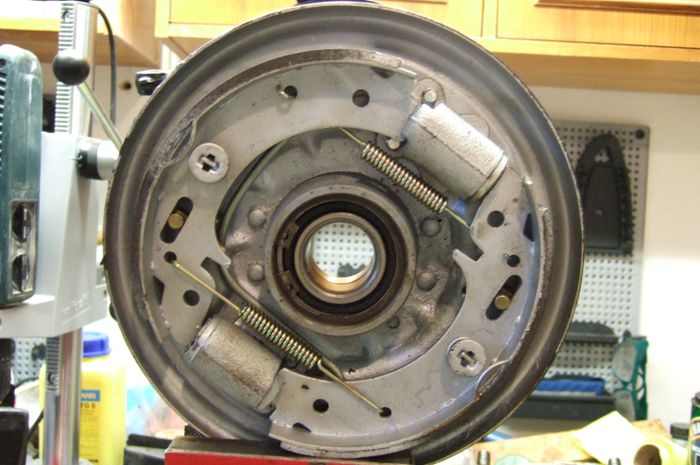Вместо тормозного суппорта, как у дискового тормоза, в барабанных тормозах жидкость попадает в так называемый рабочий тормозной цилиндр, установленный внутри чугунного тормозного барабана.